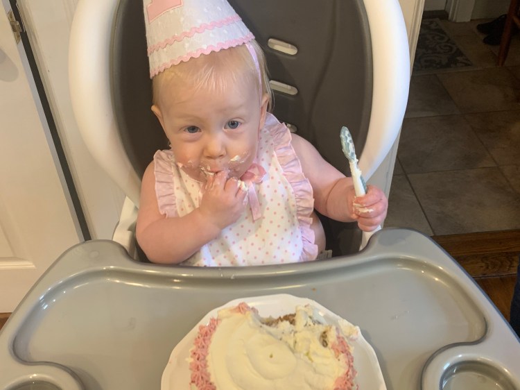 After trying out a few recipes and purchasing tiny cake pans, I am ready to debut my first recipe: a smash cake for my daughter’s first birthday. If you would have told me a year ago that I would be agonizing over every ingredient that goes into a cake that will likely end up on the ground (and, subsequently, as dog food), I’m not sure I would have believed you…but here we are! Motherhood has changed me. This recipe is an adaptation of my favorite carrot cake with cream cheese frosting. Both the baby and the dog love carrots, so whoever ends up eating it will inevitably be pleased. Win/win.